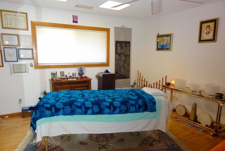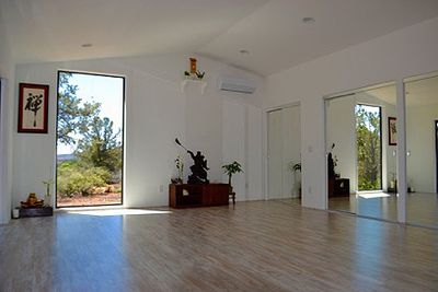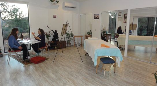清らかなエネルギィーの落ち着いた雰囲気でのヒーリングセッション、室内からもレッドロックを眺めながら施術。