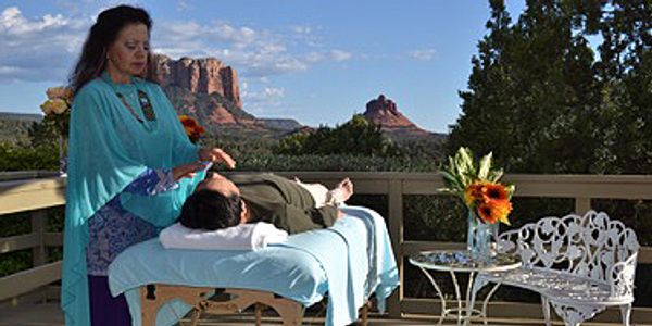 施術はChapel of the Holy Cross(ホーリークロス教会)の区域、レッドロックのボルテックスに囲まれたセドナならではのバランスのとれたエネルギーの場所で、全てのセッションは衣服を着たままの状態にてヒーリング用のベットで実施されます。セッション開始前にはアメリカ原住民が儀式の前に浄化の為に使うセークレットホワイトセージで清めクリスタルボールでサウンドヒーリングを行います。