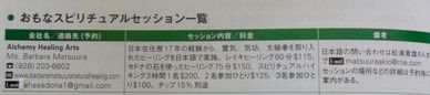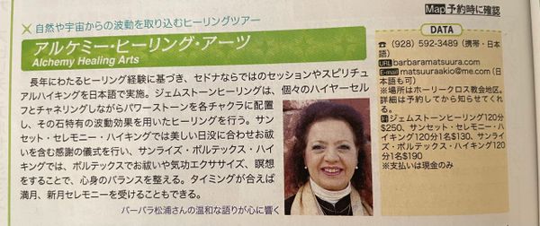 地球の歩き方2018年〜19版 314ページにおもなスピリチュルアル セッション一覧に紹介。