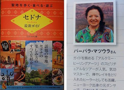 実業之日本社出版、「セドナ最新ガイド」にボルテックスの歩き方、ページ20、21にサンセット セレモニーハイキングツアーがページ32、33で紹介。